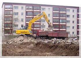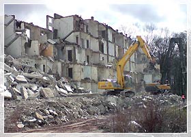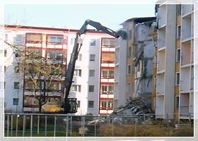 Insgesamt waren110 Wohnungen mit 30 000 m³ umbauten Raum abzubrechen und der dabei anfallende Bauschutt fach- und sachgerecht zu entsorgen.